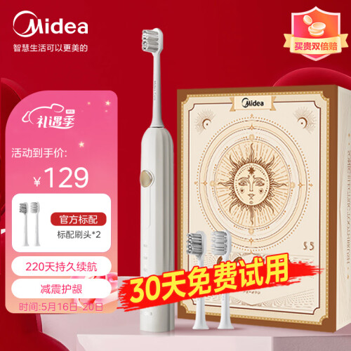 当前的位置: 首页 > 今日值得买 > 美的(Midea)电动牙刷成人 声波震动 220天长续航 智能换区提醒 520送礼物软毛刷头*2 情侣款 S5 小米白