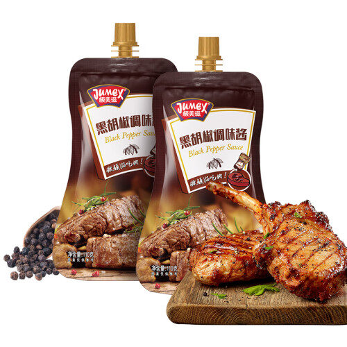 当前的位置: 首页 > 今日值得买 > 极美滋 黑椒烧烤酱 便捷挤挤装 西餐牛排蘸酱调味酱 烧烤调料110g*2