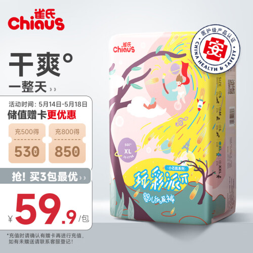 当前的位置: 首页 > 今日值得买 > 雀氏(Chiaus)小芯肌玩彩派纸尿裤 XL50片(12-17kg)尿不湿 瞬吸干爽