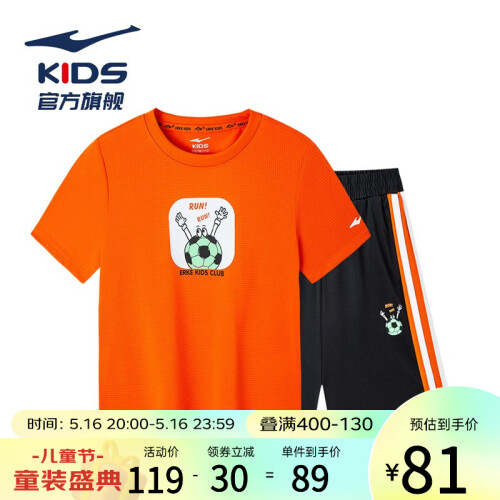 当前的位置: 首页 > 今日值得买 > 鸿星尔克(ERKE)儿童套装男小童夏季新款宽松T恤+短裤运动套装 罂粟黄 120