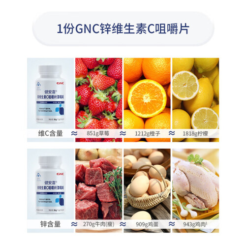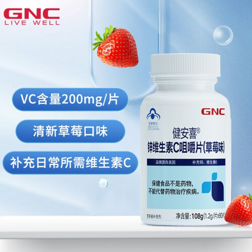 当前的位置: 首页 > 今日值得买 > GNC健安喜 维C含量200mg/片 锌维生素C咀嚼片(草莓味) 90片 成人男女补充VC 90片