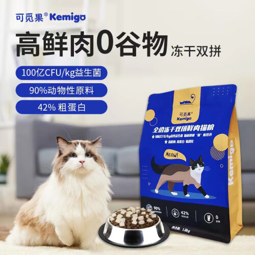 当前的位置: 首页 > 今日值得买 > 可觅果冻干双拼猫粮1.6kg 鲜肉无谷粮 成猫幼猫全价益生菌猫粮 冻干双拼1.6kg