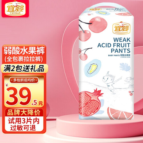 当前的位置: 首页 > 今日值得买 > 宜婴弱酸水果全包裹拉拉裤超薄透气防漏男女新生婴儿尿不湿纸尿小内裤 弱酸水果【拉拉裤】XXXXL码30片