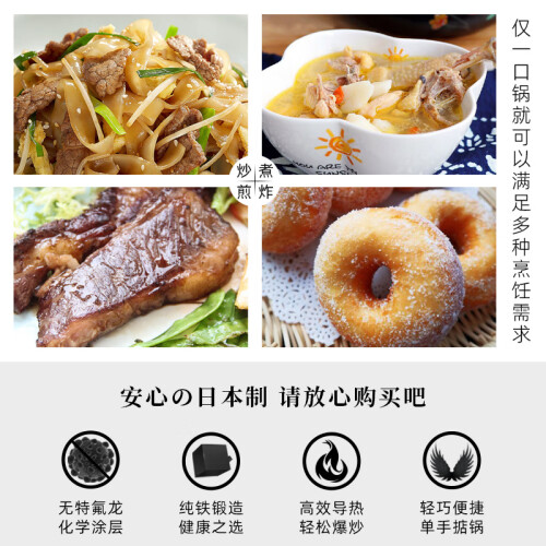 当前的位置: 首页 > 今日值得买 > 珍珠生活日本进口铁锅 家用炒菜锅 无涂层不易粘锅 轻盈健康耐用熟铁炒锅