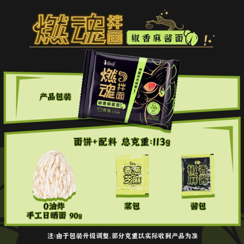 当前的位置: 首页 > 今日值得买 > 康师傅 方便面燃魂拌面虎皮辣椒椒香麻酱潮辣沙茶浓浓炸酱 燃魂拌面4口味8袋整箱装