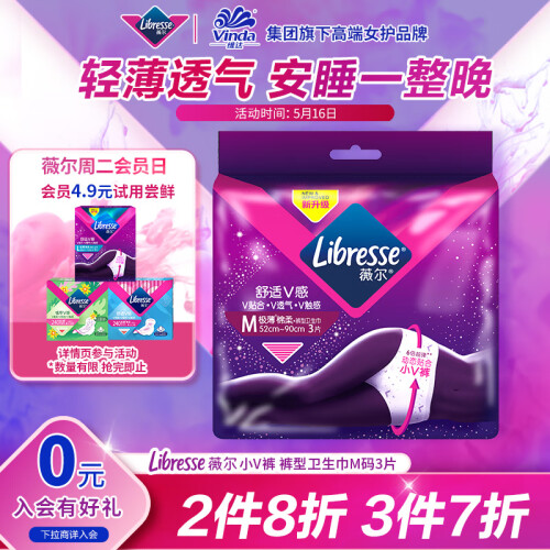 当前的位置: 首页 > 今日值得买 > 薇尔安睡裤安心裤 姨妈巾 小V裤 裤型卫生巾M码3片 透气贴合 精准防漏