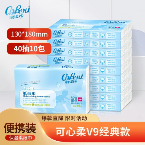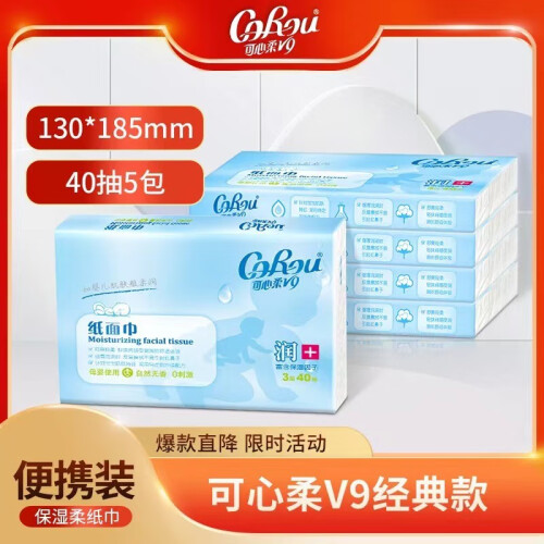 当前的位置: 首页 > 今日值得买 > 可心柔 (V9 COROU)云柔巾婴儿柔纸巾柔润面巾纸便携式3层40抽 40抽*5包