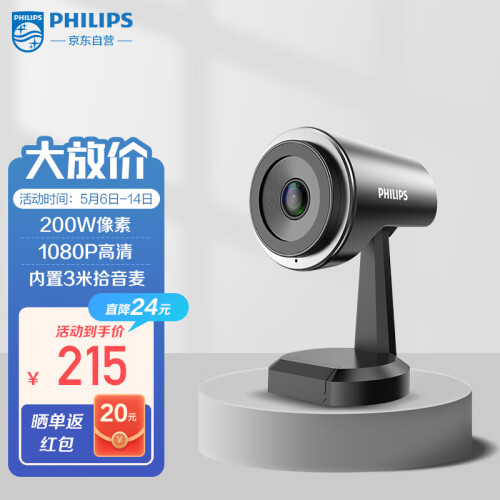 当前的位置: 首页 > 今日值得买 > 飞利浦电脑摄像头家用 1080P高清视频通话内置麦克风 自动对焦USB台式机视频会议网络课程直播录播PSE0510