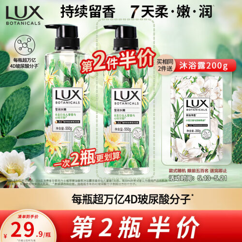 当前的位置: 首页 > 今日值得买 > 力士(LUX)植萃精油香氛沐浴露 夜皇后仙人掌香 550g 莹润水嫩 4D玻尿酸留香