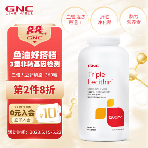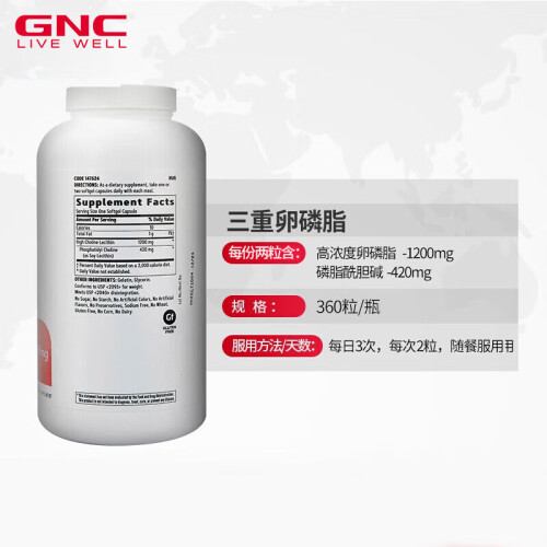 当前的位置: 首页 > 今日值得买 > GNC健安喜 三倍浓缩大豆卵磷脂胶囊*360粒/瓶 每份1200mg高含量 支持心脏健康 鱼油好搭档 海外原装进口