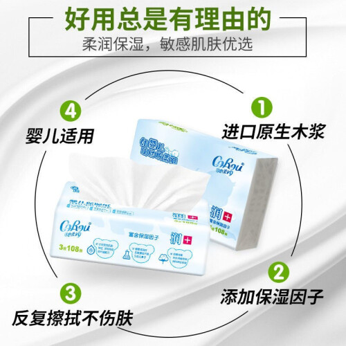 当前的位置: 首页 > 今日值得买 > 可心柔(COROU)V9润+婴儿云柔巾新生宝宝用柔润保湿纸抽纸 108抽*12包