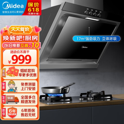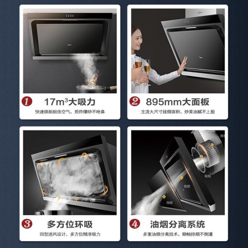 当前的位置: 首页 > 今日值得买 > 美的(Midea) 家用抽油烟机17立方大吸力 侧吸式 立体环吸 排烟机燃气灶具套装 厨房家电J15 【立体环吸 油烟分离】单烟机