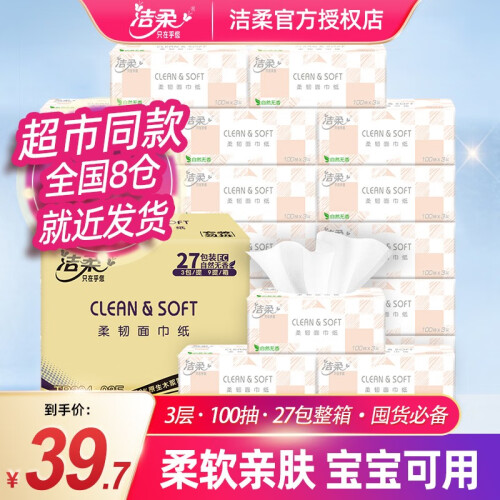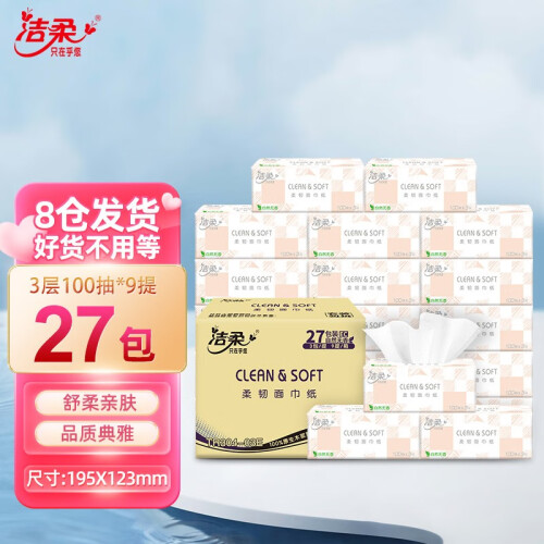 当前的位置: 首页 > 今日值得买 > 洁柔抽纸粉抽无香27包整箱餐巾纸面巾纸卫生纸宝宝可用擦嘴纸巾擦手纸 27包整箱装-店长力荐