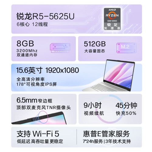 当前的位置: 首页 > 今日值得买 > 惠普(HP) 星15青春版 15.6英寸雾面大屏娱乐设计学生网课轻薄笔记本电脑 【新】R5-5625U 8G 512G 雾面大屏