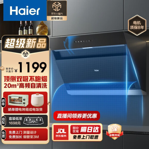 当前的位置: 首页 > 今日值得买 > 海尔(Haier)抽油烟机家用厨房顶侧双吸式吸油烟机20立方自动清洗挥手智控大吸力脱排油烟机抽油烟机 顶侧双吸排烟