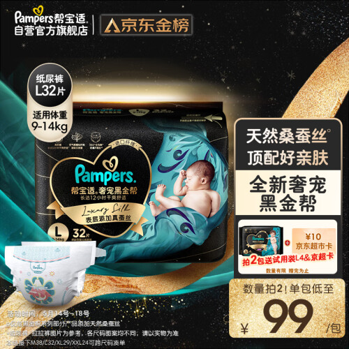 当前的位置: 首页 > 今日值得买 > 帮宝适黑金帮纸尿裤L32片(9-14kg)尿不湿蚕丝 超薄透气