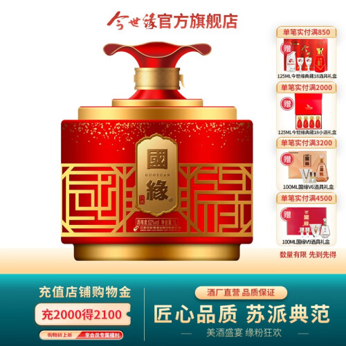 当前的位置: 首页 > 今日值得买 > 今世缘52度国缘100 高端商务珍藏送礼白酒 1L单瓶装