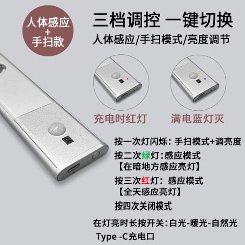 当前的位置: 首页 > 今日值得买 > 智特人体感应灯走廊灯led灯橱柜灯酒柜灯卧室家用夜灯感应灯带小夜灯 银色【手扫+感应双模式】 20厘米【三色】