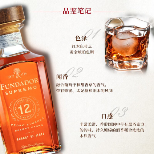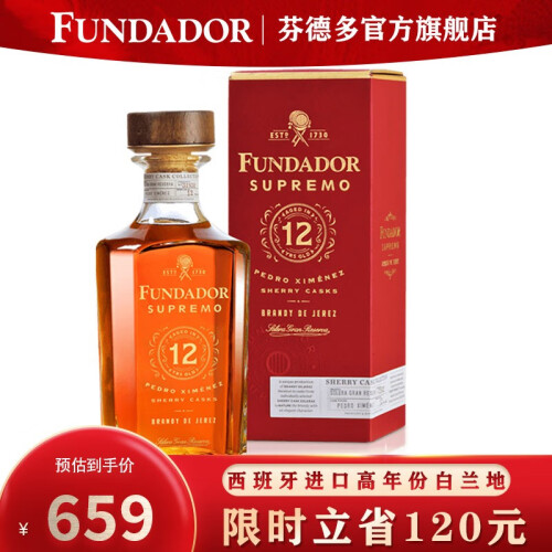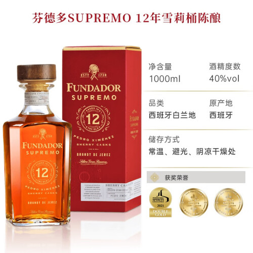 当前的位置: 首页 > 今日值得买 > 芬德多(FUNDADOR)洋酒brandy40度 西班牙进口 12年雪莉桶陈酿白兰地酒 屡获金奖 1L*1瓶