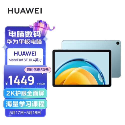 当前的位置: 首页 > 今日值得买 > 华为HUAWEI MatePad SE 2023 10.4英寸2K护眼全面屏 影音娱乐办公学习平板电脑6+128GB WiFi(海岛蓝)