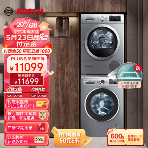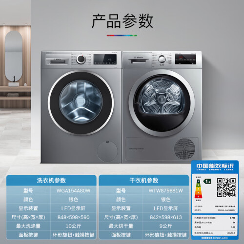 当前的位置: 首页 > 今日值得买 > 博世(BOSCH)洗烘套装10+9KG全自动滚筒洗衣机智能添加家用热泵烘干机 自动投放 154A80+875681 以旧换新