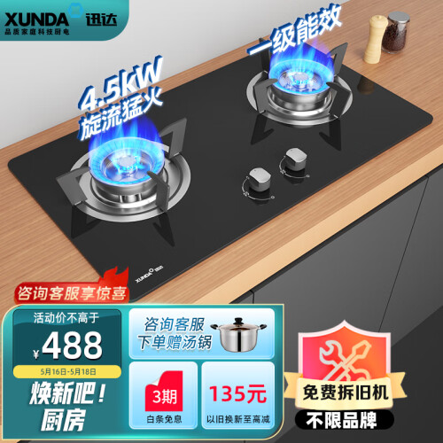 当前的位置: 首页 > 今日值得买 > 迅达(XUNDA)燃气灶天然气灶家用 双灶具灶台 嵌入式台式两用 4.5KW旋流猛火灶 钢化玻璃面板 Q1-天然气