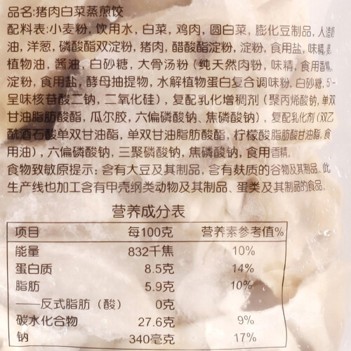 当前的位置: 首页 > 今日值得买 > 千味央厨 只为餐饮 厨师之选猪肉白菜蒸煎饺 1kg(共50只)蒸饺 煎饺 速冻饺子 锅贴 早餐食材