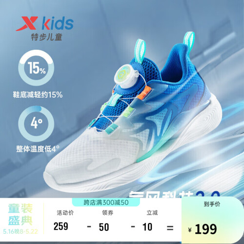 当前的位置: 首页 > 今日值得买 > 特步(XTEP)童鞋氢风2.0男童鞋夏季网面透气旋钮扣中大童跑步鞋运动鞋子 678215119839 普鲁士蓝/帆白 35码