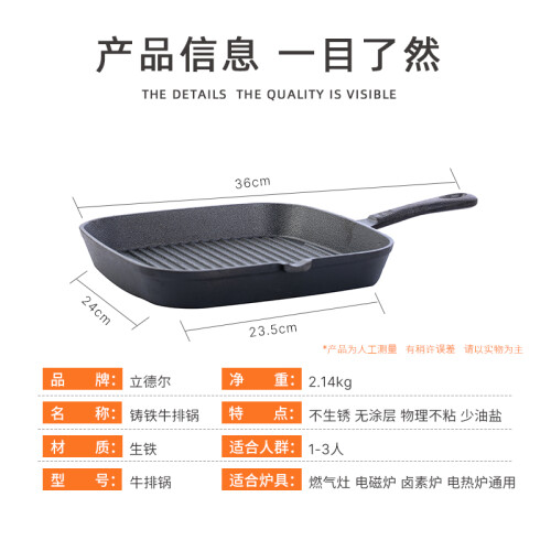 当前的位置: 首页 > 今日值得买 > 立德尔(Xinlong LiDeEr) 牛排煎锅条纹铸铁牛扒盘平底锅无涂层不易粘煎盘24cm
