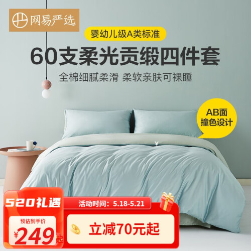 当前的位置: 首页 > 今日值得买 > 网易严选【新疆长绒棉】60支纯棉贡缎四件套 全棉床单床笠被套床上用品 【柔光款】浅蓝青绿*床单 1.8m床:适用2.2m*2.4m被芯