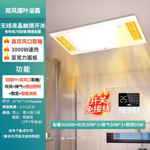 当前的位置: 首页 > 今日值得买 > 雷士(NVC) 风暖浴霸双电机排气扇照明一体 卫生间集成吊顶暖风机 取暖器 3000W|七合一|双摆叶双出风