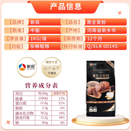 当前的位置: 首页 > 今日值得买 > 新良黑全麦粉 黑小麦全麦面粉 含麦麸粗粮杂粮面粉 烘焙原料 1kg
