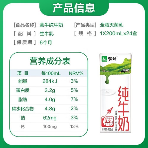 当前的位置: 首页 > 今日值得买 > 蒙牛纯牛奶全脂早餐奶200ml×24包*2提装