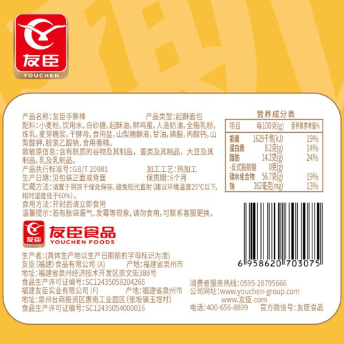 当前的位置: 首页 > 今日值得买 > 友臣(YOUCHEN) 友臣手撕面包棒法式早餐营养代餐食品休闲零食小吃整箱 友臣手撕棒1000g(奶香味)