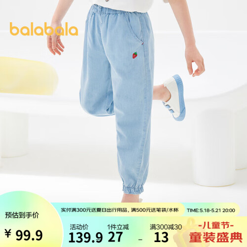 当前的位置: 首页 > 今日值得买 > 巴拉巴拉(BALABALA)巴拉巴拉女童牛仔裤儿童裤子夏季装中大童甜美长裤天丝牛仔束脚裤
