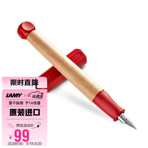当前的位置: 首页 > 今日值得买 > 凌美(LAMY)钢笔 ABC儿童小学生入门练字钢笔 红色 标准A尖0.8mm 德国进口送礼礼物