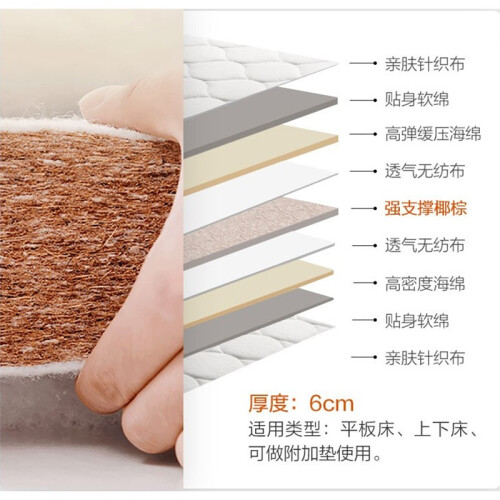 当前的位置: 首页 > 今日值得买 > 富安娜床垫 椰棕床垫 乳胶护脊硬棕垫 榻榻米薄垫 床垫1.8米*2米 椰棕+海绵(约6cm厚) 90*190cm