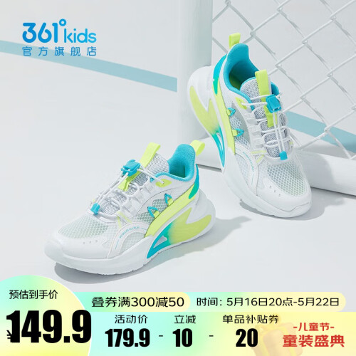 当前的位置: 首页 > 今日值得买 > 361°【风透科技2.0】儿童运动鞋2023夏季新款男童跑步鞋女中大童鞋子 361度白/荧光嫩绿/超氢蓝色3810 34