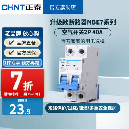 当前的位置: 首页 > 今日值得买 > 正泰(CHNT)空气开关空开断路器一位小型家用 NBE7 2P 40A