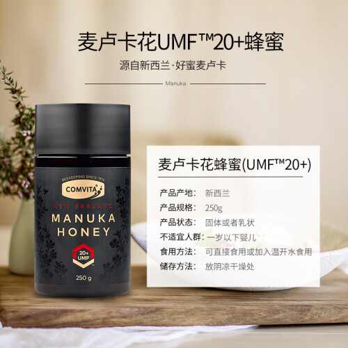 当前的位置: 首页 > 今日值得买 > 康维他(Comvita)麦卢卡蜂蜜20+250g 新西兰原装进口天然纯蜂蜜 送礼佳品