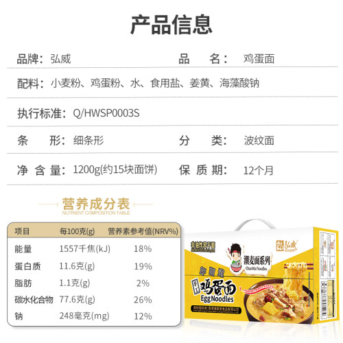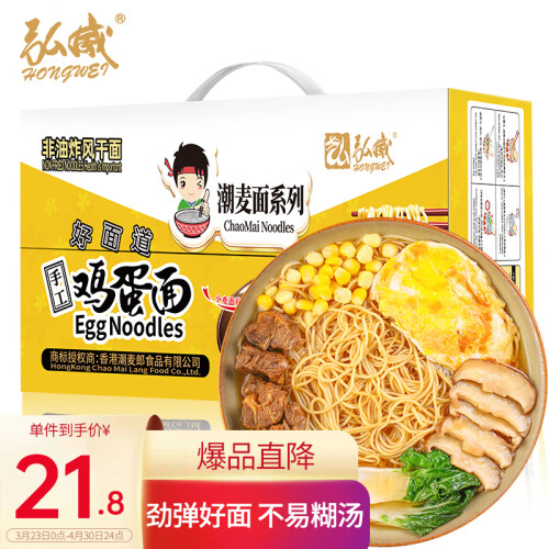 当前的位置: 首页 > 今日值得买 > 弘威牌 鸡蛋面1200g 非油炸面条方便速食面饼整箱 鸡蛋挂面全蛋面