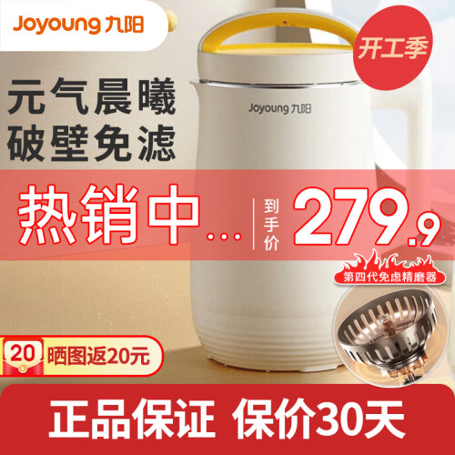 当前的位置: 首页 > 今日值得买 > 九阳(Joyoung) 豆浆机破壁免滤多功能破壁机家用全自动1.2L大容量辅食果汁元气晨曦系列 D545【升级破壁免滤高颜值豆浆机】