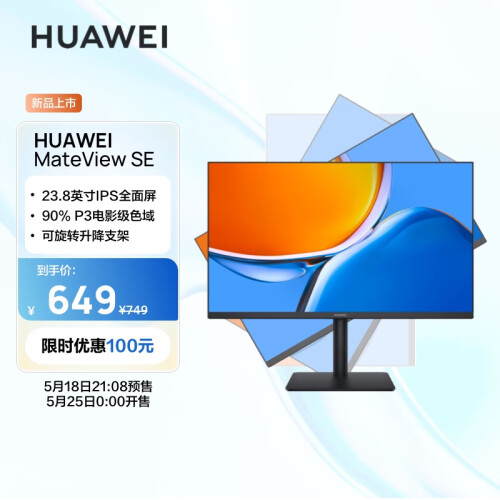 当前的位置: 首页 > 今日值得买 > 华为MateViewSE 23.8英寸显示器 旋转升降壁挂 IPS全面屏 P3广色域 75Hz 低蓝光无频闪 DP+HDMI+VGA 电脑办公
