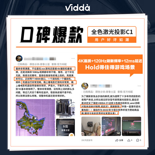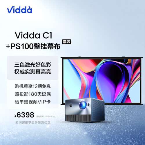 当前的位置: 首页 > 今日值得买 > Vidda C1 海信 4K激光投影仪家用投影机 便携电视卧室智能100吋家庭影院(含100英寸壁挂幕布)