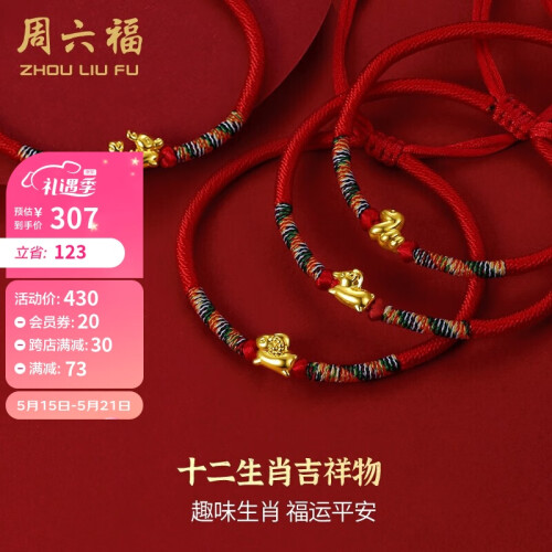 当前的位置: 首页 > 今日值得买 > 周六福珠宝 十二生肖 5D硬金足金黄金转运珠女款 彩绳红绳手绳 定价 兔 成人款 520情人节礼物