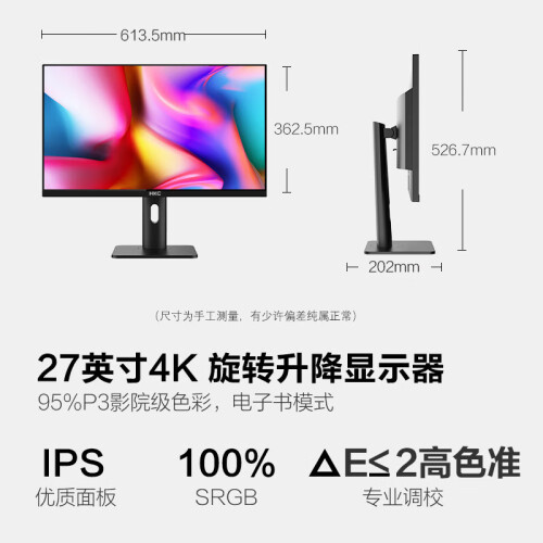当前的位置: 首页 > 今日值得买 > HKC 27英寸 IPS屏 4K高清 三面微边 广色域旋转升降 家用办公设计 专业电脑屏幕 可壁挂 显示器 P272U