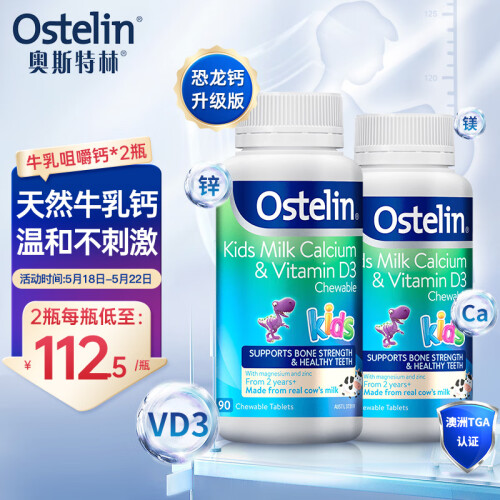 当前的位置: 首页 > 今日值得买 > Ostelin奥斯特林钙镁锌儿童钙片补充钙维生素VD3牛乳咀嚼钙恐龙钙2瓶装