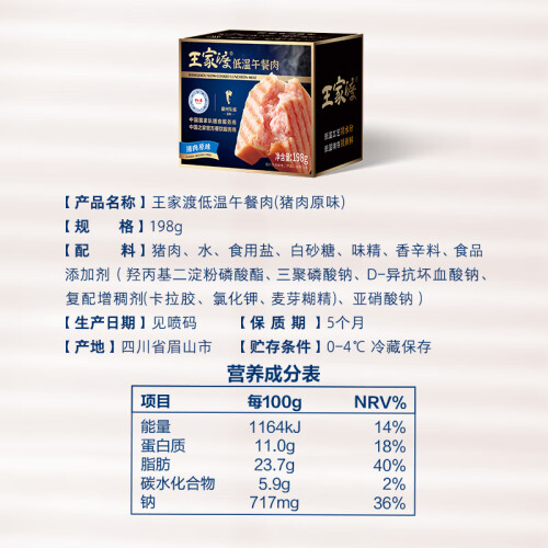 当前的位置: 首页 > 今日值得买 > 眉州东坡 王家渡低温午餐肉198g 涮火锅烧烤三明治炒菜食材【店长推荐】 【原味】198g*6盒,赠2盒随机
