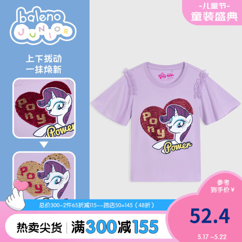 当前的位置: 首页 > 今日值得买 > Baleno Junior【小马宝莉IP】班尼路童装2023春夏新款花边珠片T恤短袖女童上衣 白色001W 120cm