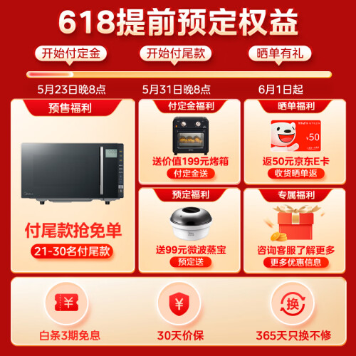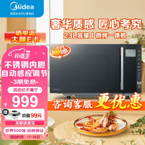 当前的位置: 首页 > 今日值得买 > 美的(Midea)微碳系列 900w智能变频微波炉 附烤箱功能 自动调温 两种烧烤模式 不锈钢腔体(PC23M8)